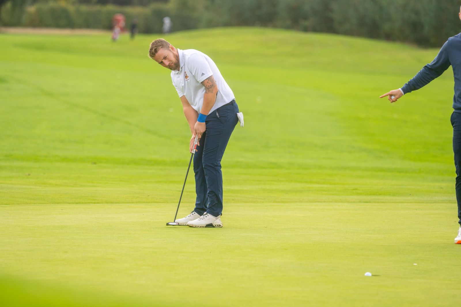 The team enjoyed a practice round on Friday before the competition started on Saturday morning with Henbury Tee Times of 10:30 (Callum), 12:30 (Nick) and 1:20 (Mike). Saturday was forecast to be wet and deteriorating later in the day. Sure enough as Nick teed off at 12:30 the heavens opened and continued that way, while I have seen greens squeegeed before I have never before seen tees squeegeed!. Playing through the worst of the weather the team returned a very creditable +8 total for the three team members. This placed us 3rd behind Rotherham (the Yorkshire representatives), who had teed off early, at +3 and Workington at +5.