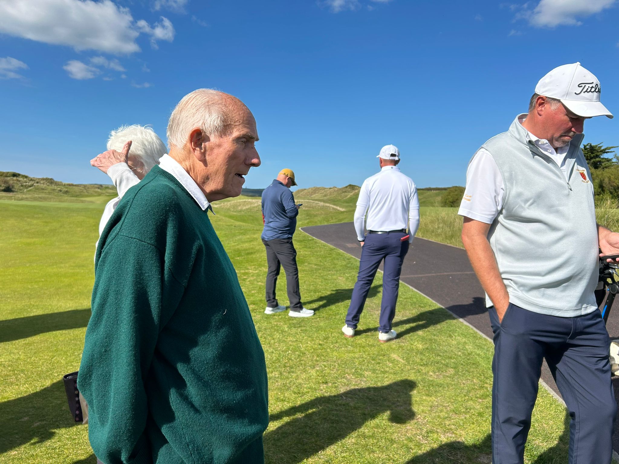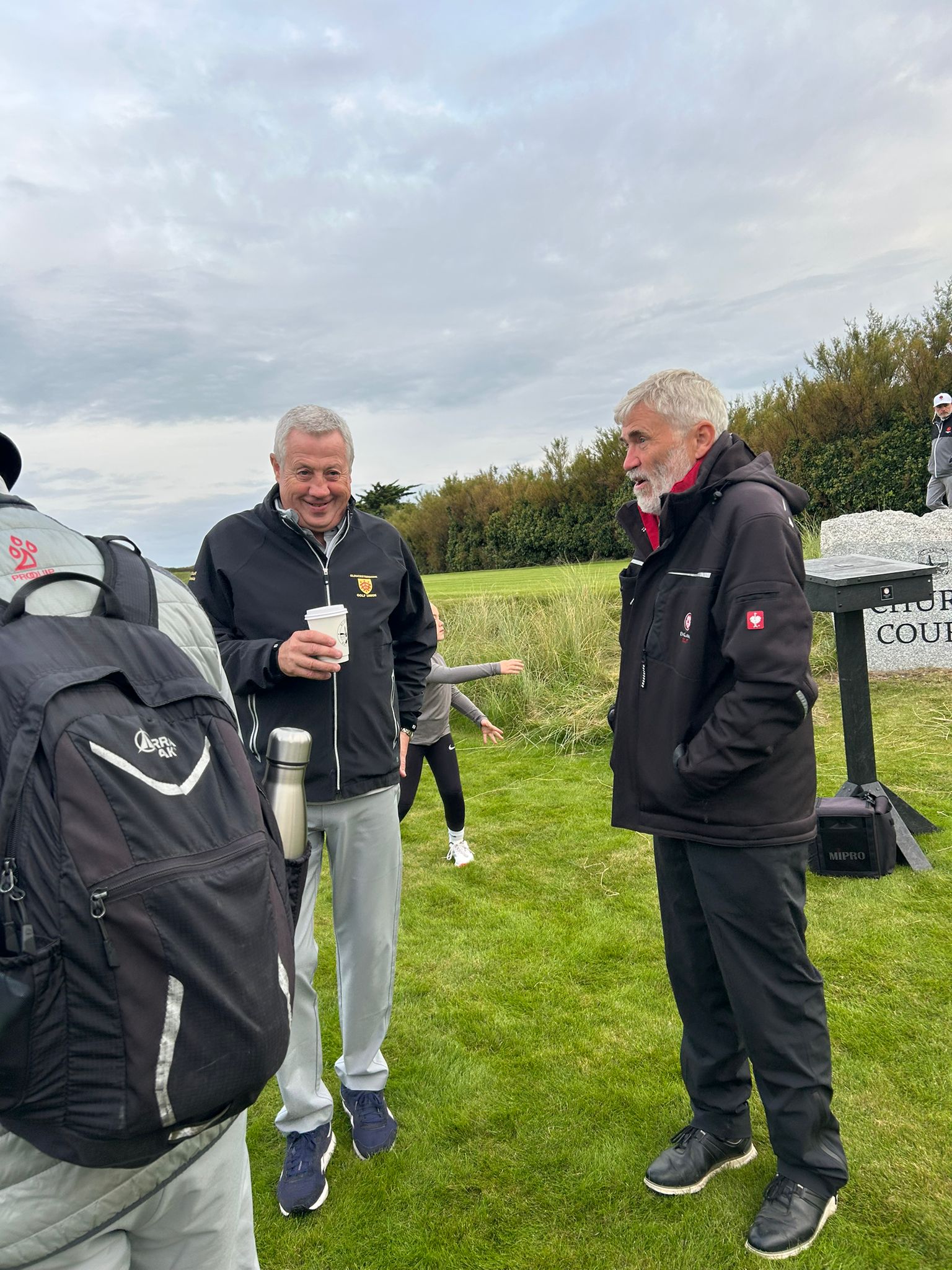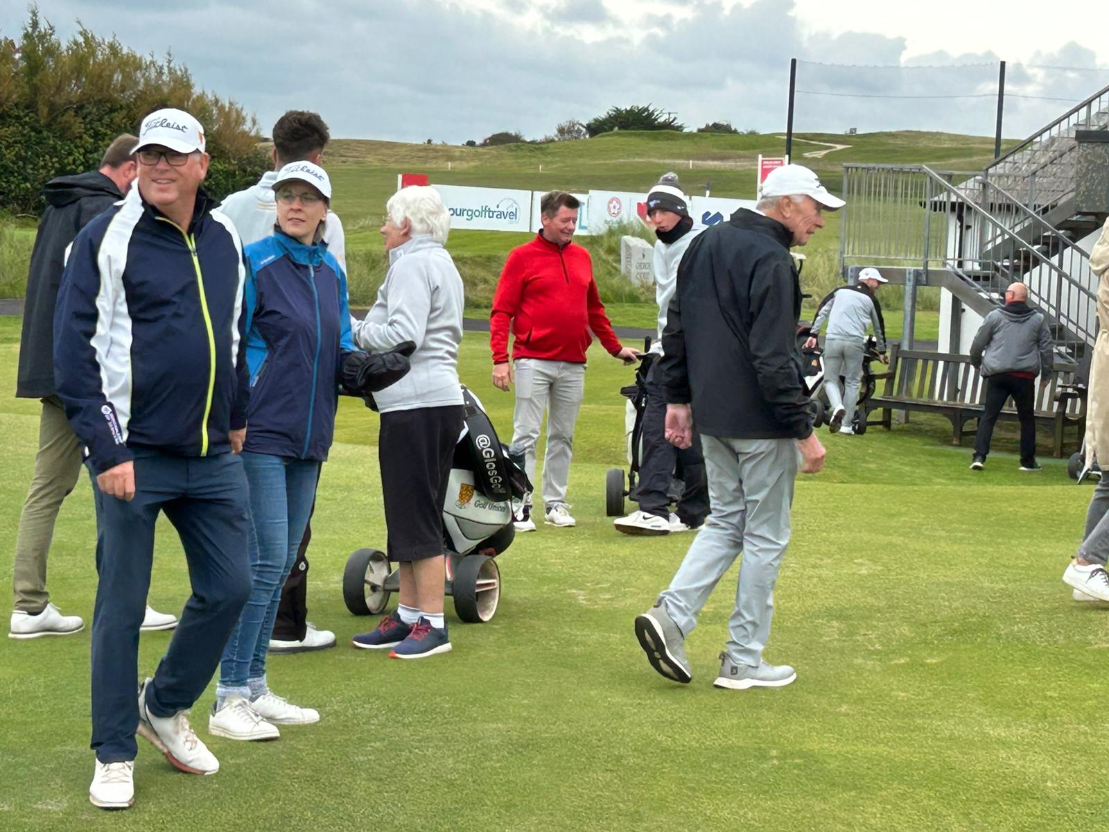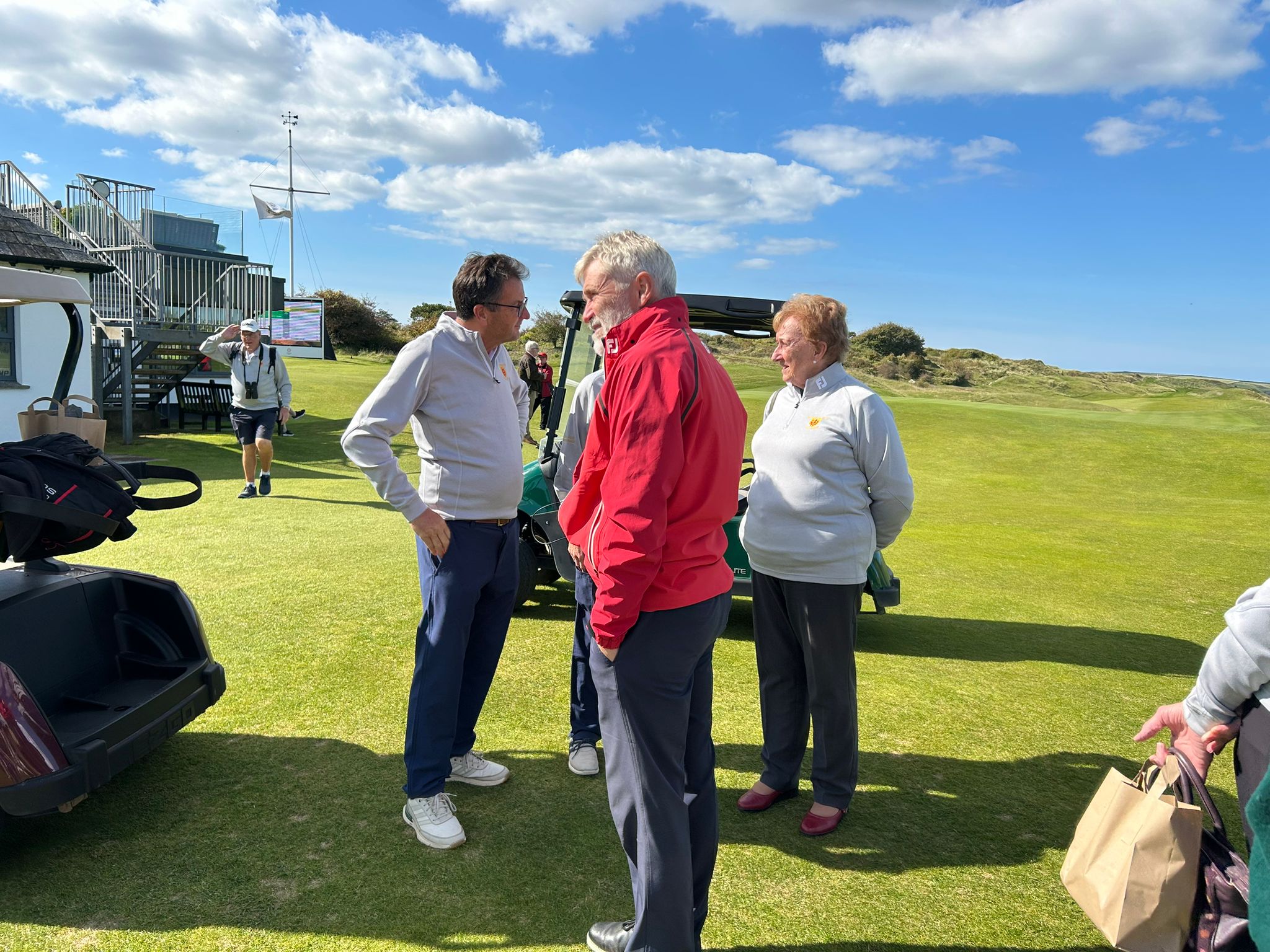 A BIG shout out to all the St Enodoc Volunteers for looking after us all. | A final briefing between Sec and Chief Ref before we get underway | Some final prep! | Leading the way today our youngest pairing - Ash and Louis - play well lads! | Come on Caddy keep up! | |