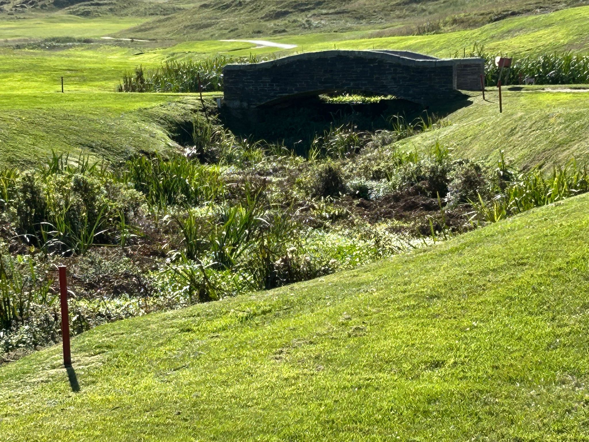 Ash Millington - Hole 4 - Pin high, left off the tee – ball ran up the wall (out of bounds the other side), stopped briefly at the top, ran back down the wall and duly rolled into the hole, for two