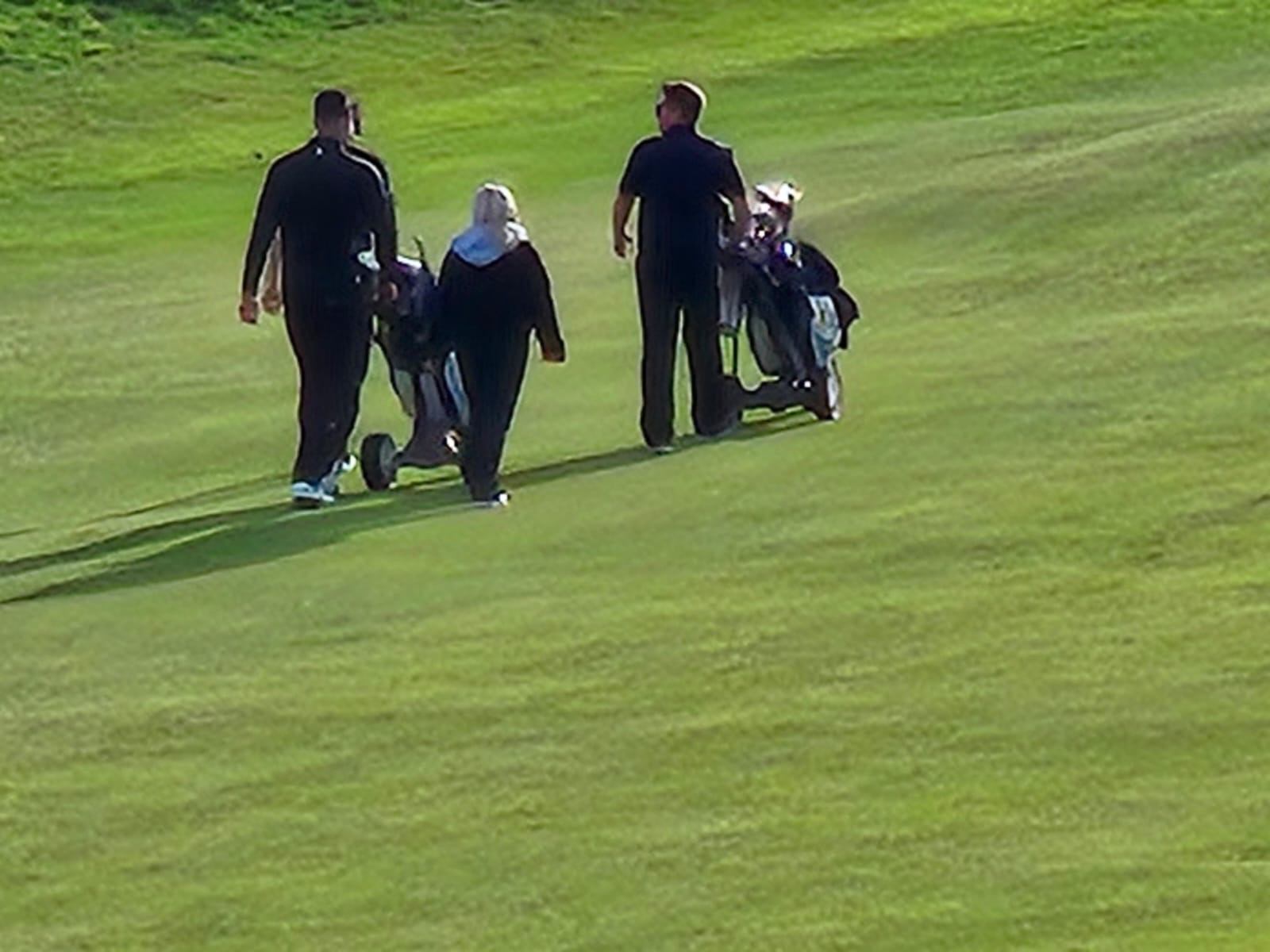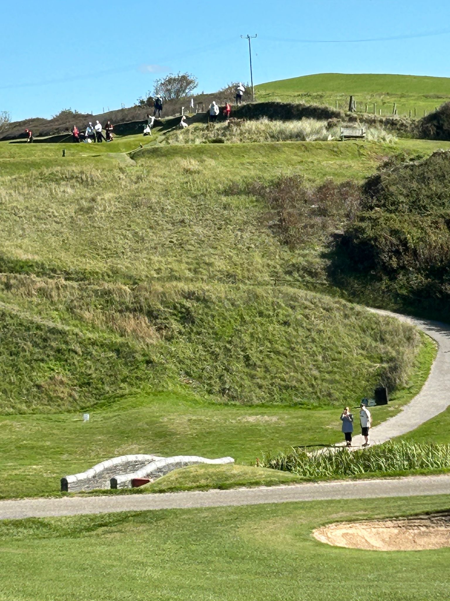 The sight of all the players, supporters and officials heading up the 18th fairway, back to the clubhouse, after the morning foursomes win – such great team spirit! (seen in the pictures below)