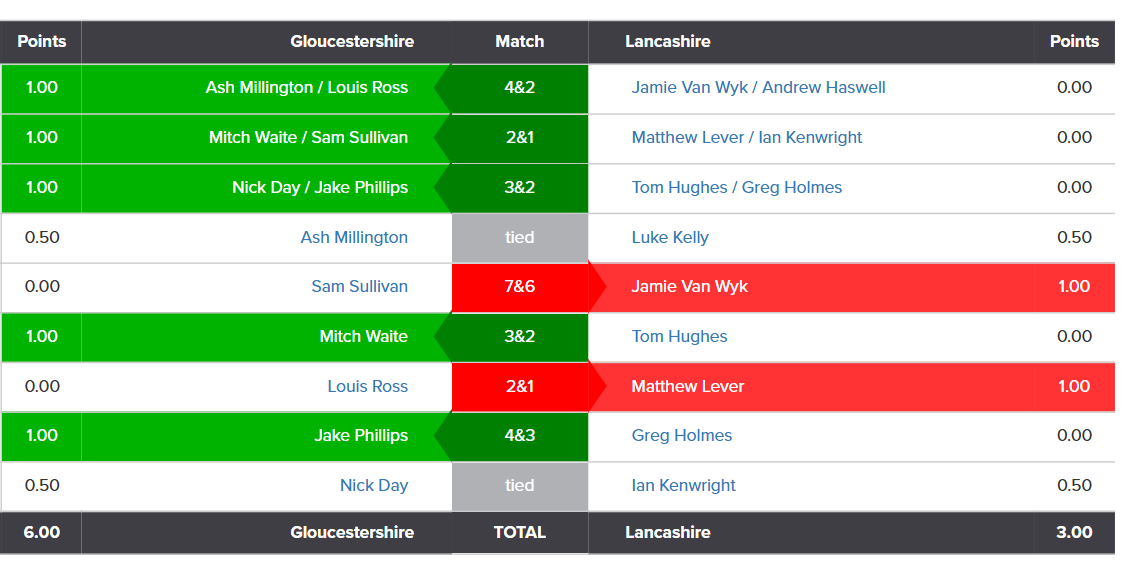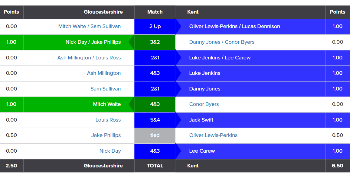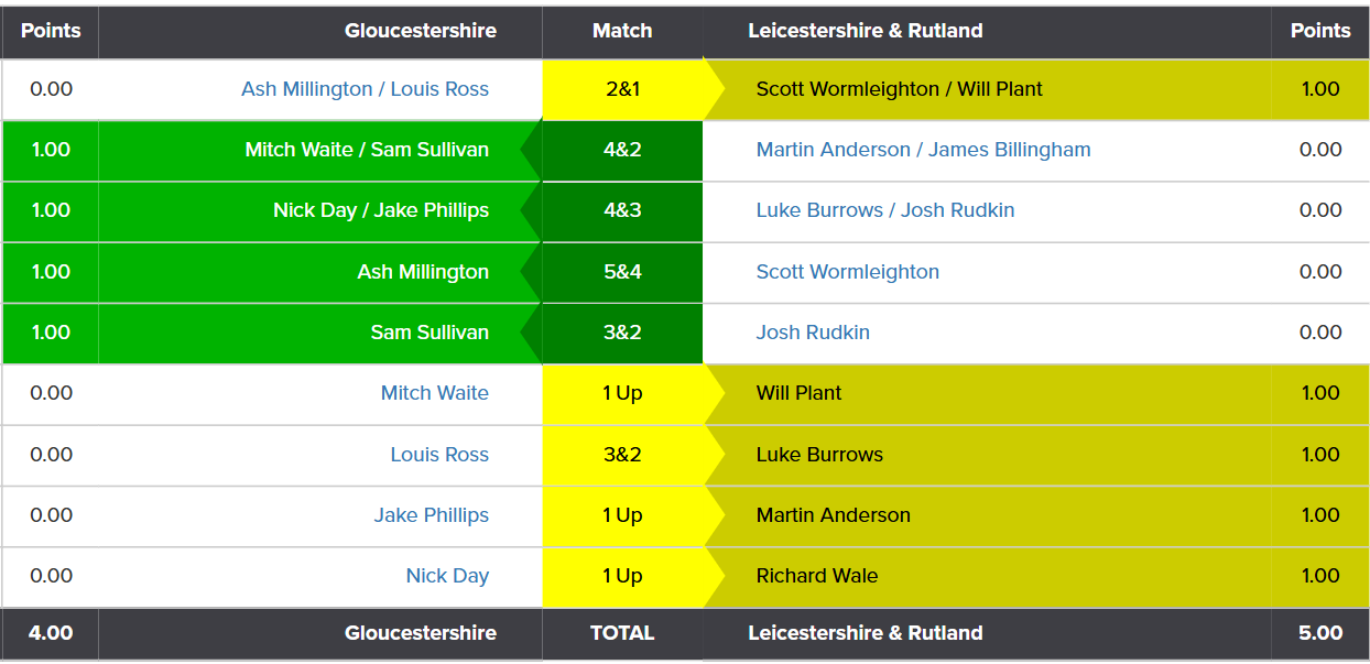 Also, thanks to all of the Gloucestershire Golf Union’s army of supporters for travelling such a distance to give us encouragement and support.